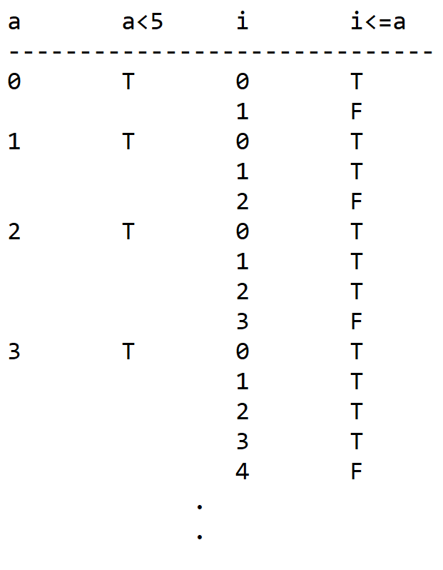 for(int i=0;i<=a;i++) { // 별을 찍기위한 변수 i 초기화 / i가 a보다 작거나 같으면 실행 후