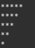 for(int i=0;i<(5-a);i++) { // 별을 찍기 위한 변수 i 초기화 / i가 5-a보다 작으면 실행 후
