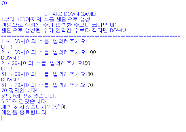 ๋ ฅํ ์๋ณด๋ค ์๋ค๋ฉด DOWN ์ ์ถ๋ ฅ