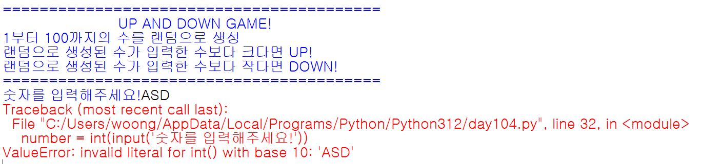 ์ซ์๊ฐ ์๋ ๋ฌธ์๋ ์ค์๋ฅผ ์ ๋ ฅํ ๊ฒฝ์ฐ์ ๋ฐ์ํ๋ VauleError